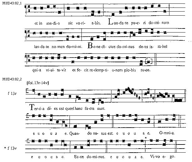 [82][MSD43:82,1; text: et in medio sic variabis. Laudate pueri dominum laudate nomen domini. Benedictus dominus deus Israhel quia visitavit et fecit redemptionem plebis suae.]