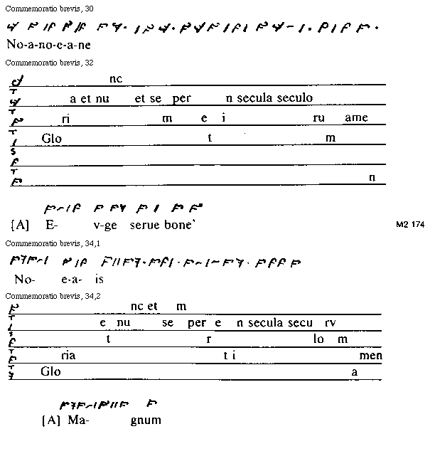 [Commemoratio brevis, 32; text: tonus, semitonium, Gloria et nunc et semper et in secula seculorum amen, [Antiphona] Evge serue bone [M2 174]]