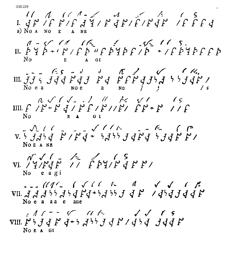 [229][GSI:229; text: I. II. III. IV. V. VI. VII. VIII. Noanoeane, Noeagi, Noeanoeane, Noeagi, Noeane, Noeagi, Noeaaaeane., Noeagi]