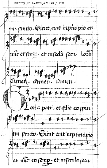 [Salzburg, St. Peter's, a.VI.44, f.10v; text: Gloria patri et fili]