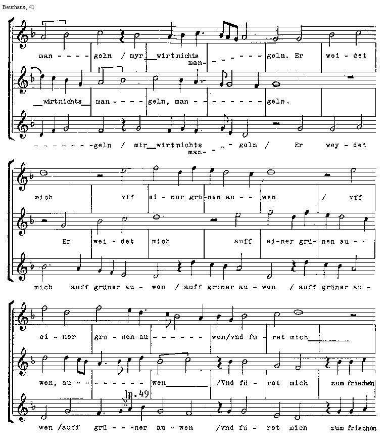 [41][Beurhaus, 41; text: myr wirt nichts mangeln /, mir, Er weidet mich vff einer gruenen auwen /, auff, / vnd fueret mich zum frischen]