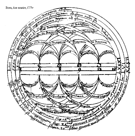 [Boen, Ars musice, f.77r,2; text: epogdous, tonus, sesqueoctaua, secundum]