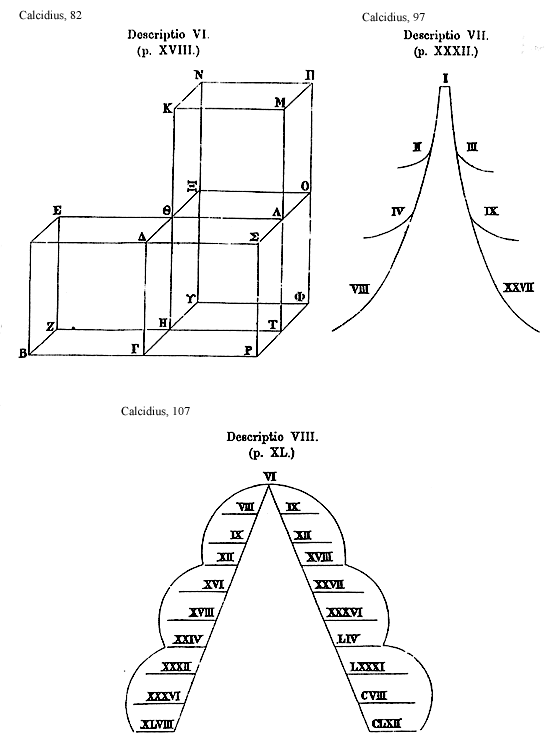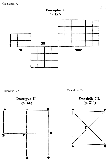 Source:Platonis Timaeus interprete Chalcidio cum eiusdem commentario, ed. Ioh. Wrobel (Leipzig: B. G. Teubner 1876; reprint ed., Frankfurt am Main: Minerva, 1963).