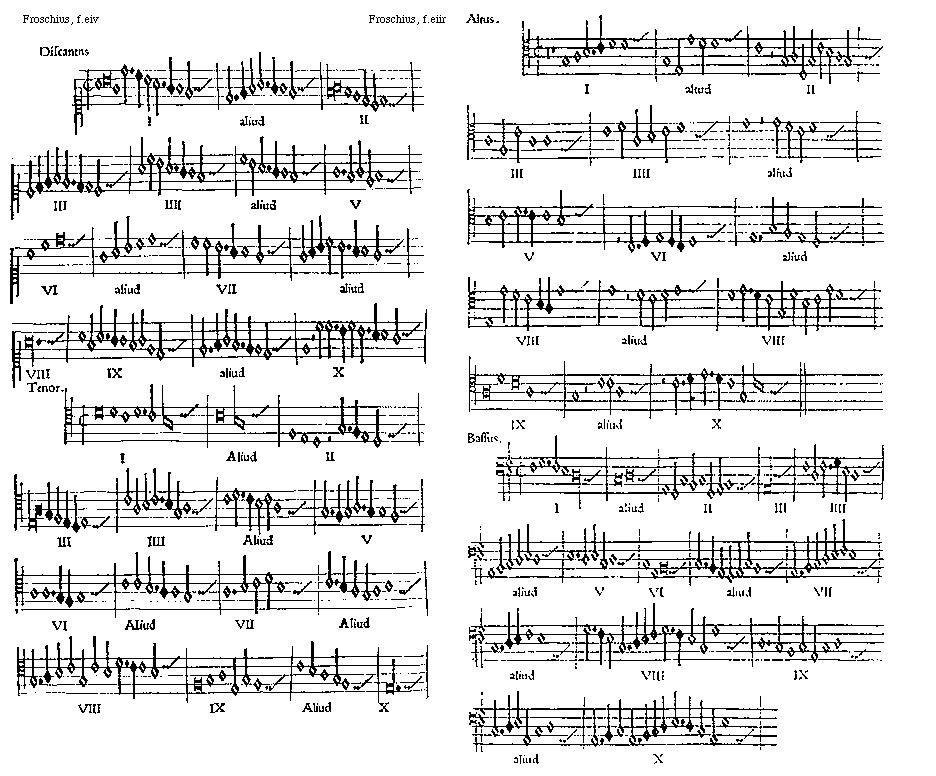 [Froschius, f.eiv; text: Discantns. I, aliud, II, III, IIII, V, VI, VII, VIII, IX, X, Tenor.]