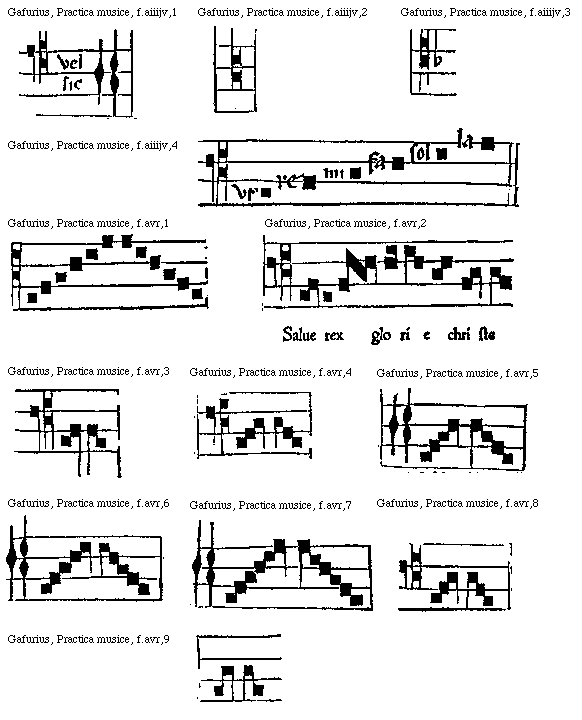 [Gafurius, Practica musice, f.bviijr,2; text: Gloria patri et filio et spiritui sancto.]