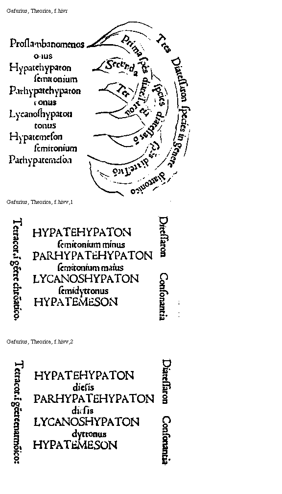 [Gafurius, Theorica, f.hivv,2; text: HYPATEHYPATON, PARHYPATEHYPATON, LYCANOSHYPATON, HYPATEMESON, diesis, dyttonus, Diatessaron Consonantia, Tetracordum in genere enarmonico:]