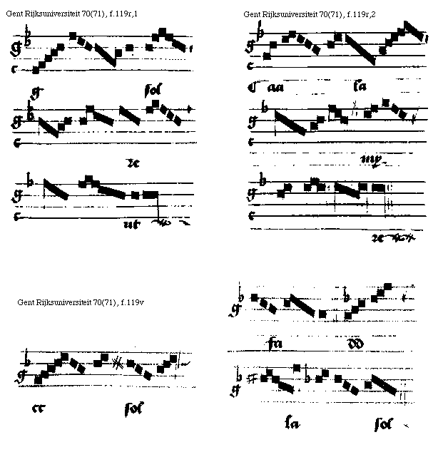 [Gent, Rijksuniversiteit, 70(71), f.119v; text: cc sol fa dd la sol]