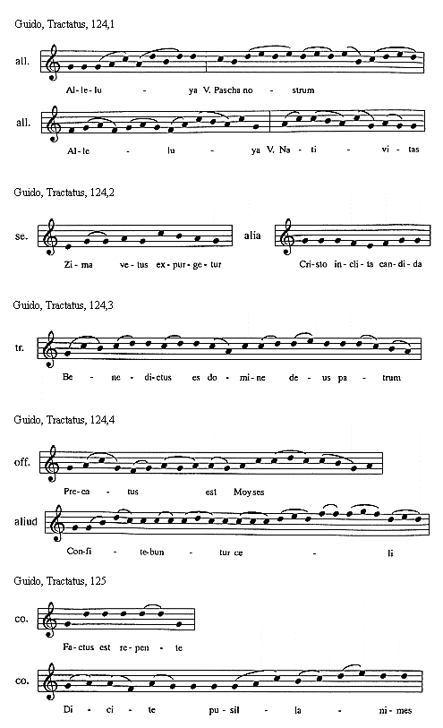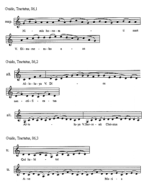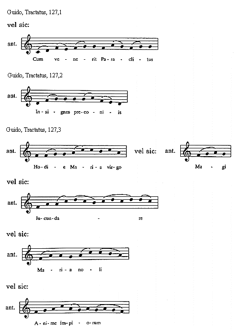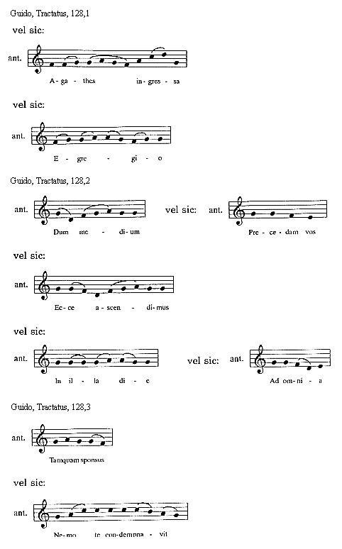 [Guido, Tractatus, 130,2; text: antiphona, Dominus, vel sic: Data sunt ei, Circundantes, Veritas de terra, Hodie scietis]