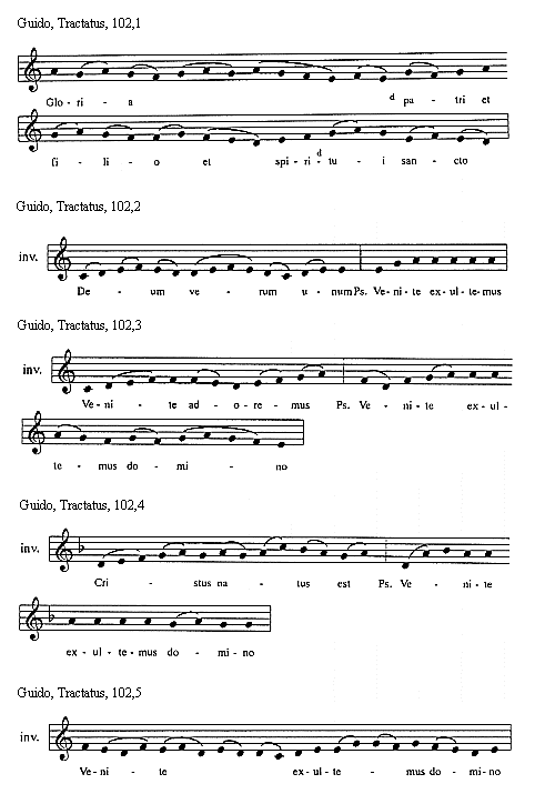[Guido, Tractatus, 133; text: invitatorium, Regem cui omnia vivunt, Psalmus, Venite exultemus domino]