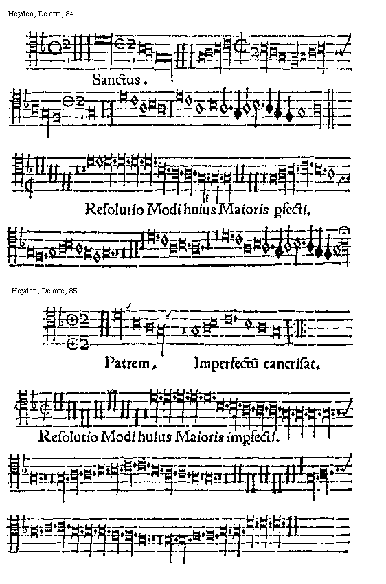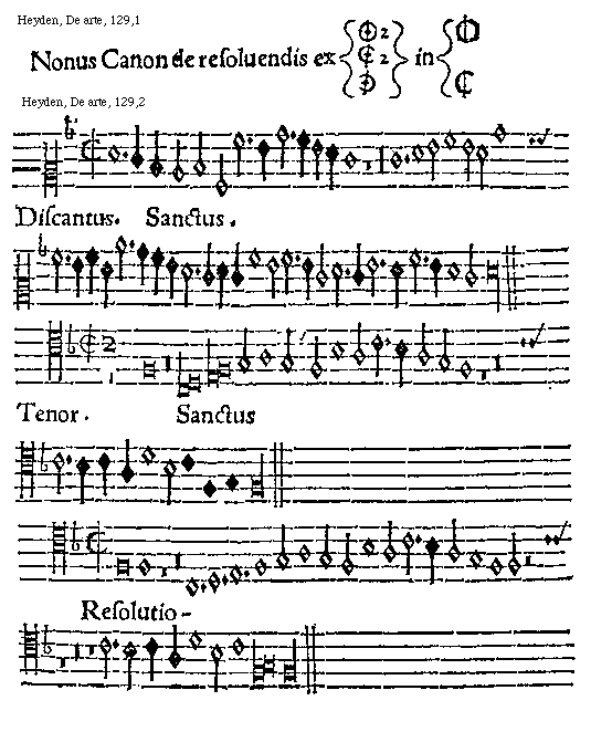 [70][Heyden, De arte, 70; text: Altus ex Discantu in unisono. Bassus ex Tenore in unisono. Resolutio Tenoris secundum, Resolutio Bassi secundum, caetera ut in Tenore.]