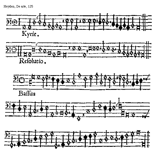 [155][Heyden, De arte, 155; text: Bassus in Subdiatessaron incipientem Tenorem prosequitur.]