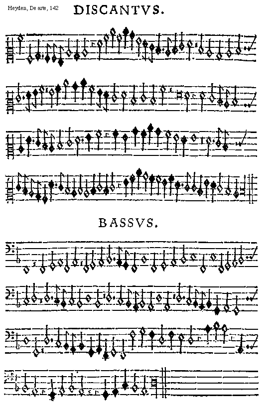 [142][Heyden, De arte, 142; text: DISCANTVS. BASSVS.]