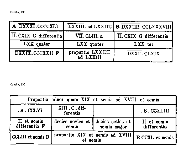 [9]Quod igitur in singulis tonis minus pervidebatur, id collectum in consonantiam evidenter apparuit, atque ut provideatur sensum quidem confusa colligere, nullo modo autem ad integritatem rationis ascendere sic consideremus. Datae enim lineae majorem minoremve aliam reperire nihil est difficile sensui. Proposita vero mensura, ut tanto majorem tantove minorem reperiat, id non faciet sensus prima conceptio, sed sollers rationis inventio.