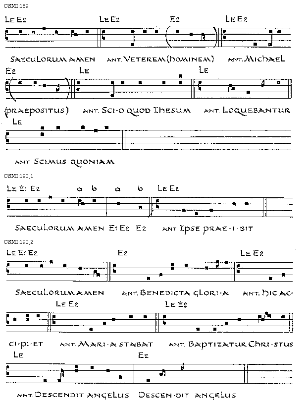 [190][CSMI:190,1; text: Le, E1, E2, a, b, Saeculorum amen, antiphona Ipse praeibit]