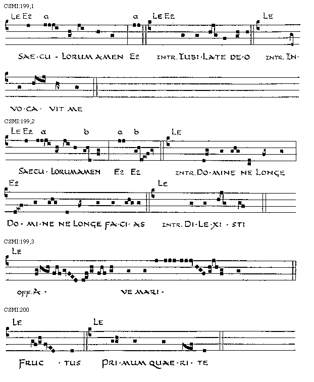 [199][CSMI:199,1; text: Le, E2, a, Saeculorum amen, introitus Iubilate Deo, introitus Invocavit me]