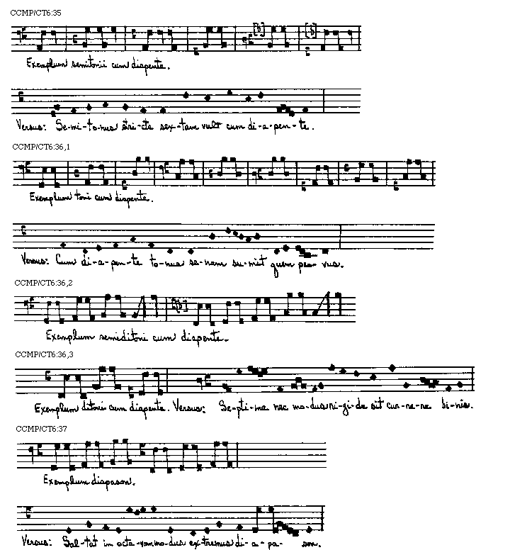 Placet in tractatu praesenti huius artis doctrinam tradere per exempla, quoniam optimus modus demonstrationis est exemplorum positis. Iuxta illud Senecae ad Lucillum longum iter per praecepta breve et efficit per exempla. Itaque ab exemplo manuali incipiens reliqua, sancti spiritus annuente, gratia exemplorum speculationibus reserabo ut discentes non solum ad peritiam canendi cantus editos promoveantur, sed etiam si placuerit inducentur ad inveniendum et componendum de novo super quocumque tonorum, antiphonas seu alias cantus iuxta exigentiam regulares.