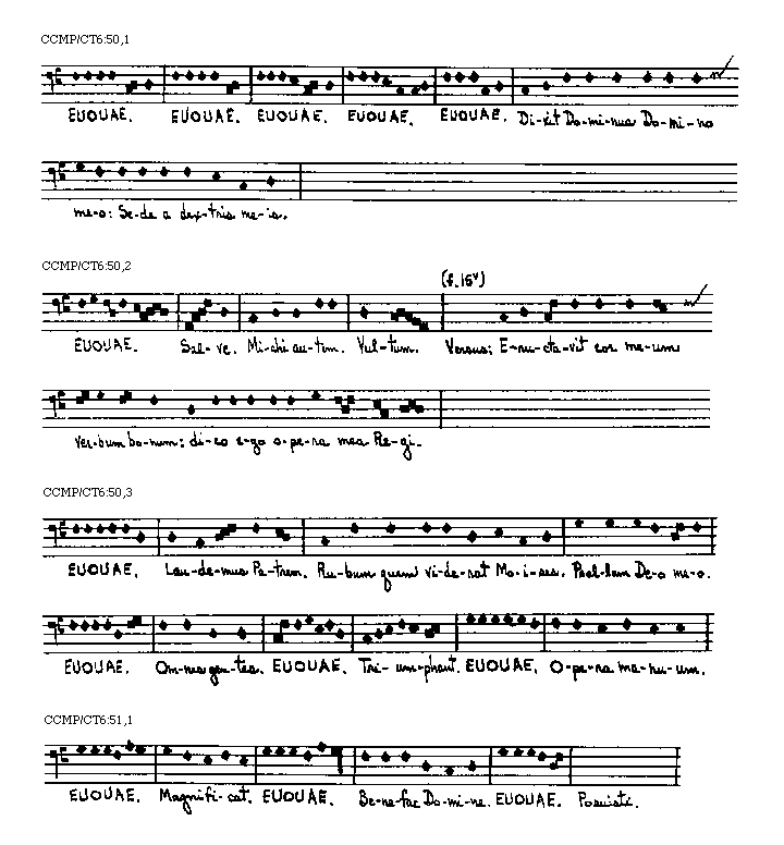 [CCMP/CT6:63,3; text: EUOUAE. Dixit Dominus Domino meo: Sede a dextris meis. Magnificat.]