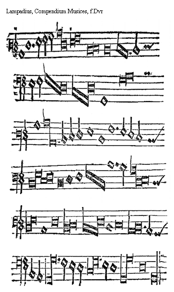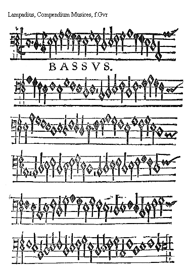Source:Compendium musices, tam figurati quam plani cantus ad formam dialogi, in usum ingenuae pubis ex eruditis Musicorum scriptis accurate congestum, quale ante hac nunquam uisum, et iam recens publicatum. Adiectis etiam regulis de concordantiarum et componendi cantus artificio, summatim omnia musices praecepta pulcherrimis exemplis illustrata, succincte et simpliciter complectens (Bern: Samuel Apiarius, 1554).