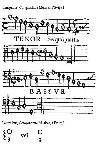 [f.Eviijr][Lampadius, Compendium Musices, f.Eviijr,1; text: 5, 4, TENOR Sesquiquarta. BASSVS.]