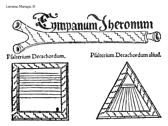 [Luscinius, Musurgia, 13; text: Hackbret.]
