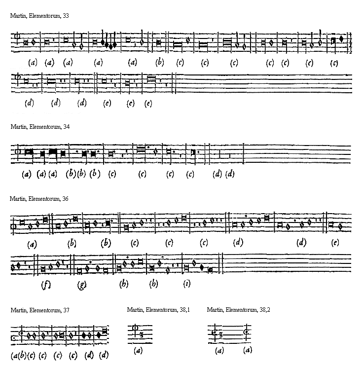 [9][Martin, Elementorum, 9; text: Supremi ordinis exempla. Exemplum b mollis, primae supremi ordinis directionis. b quadrati, secundae. Naturae, tertiae infimi. vt, re, mi, fa, sol, la]