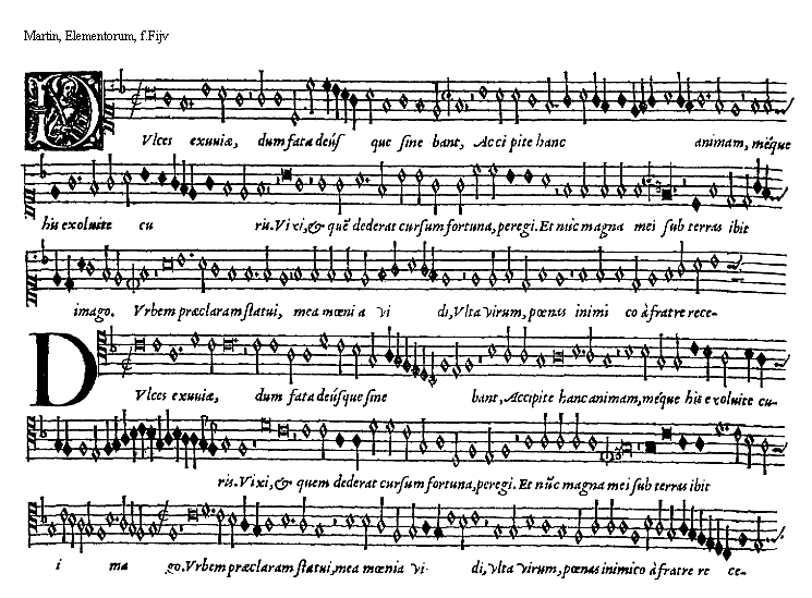 [15]notularum, vox attollenda aut deprimenda. Notulae omnes sese mediatè vel immediatè sequuntur. Posterioris modi paulò facilior quàm prioris videtur esse ratio: vt subiectum docet exemplum.