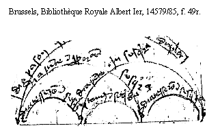 [Brussels, Bibl. Roy., 1479/85, f.49r, text: diapason que dupla, diapente in proporcione sesquedupla, diapente in sesquedupla, diatesseron in sesquetercia, tonus in sesqueoctaua]