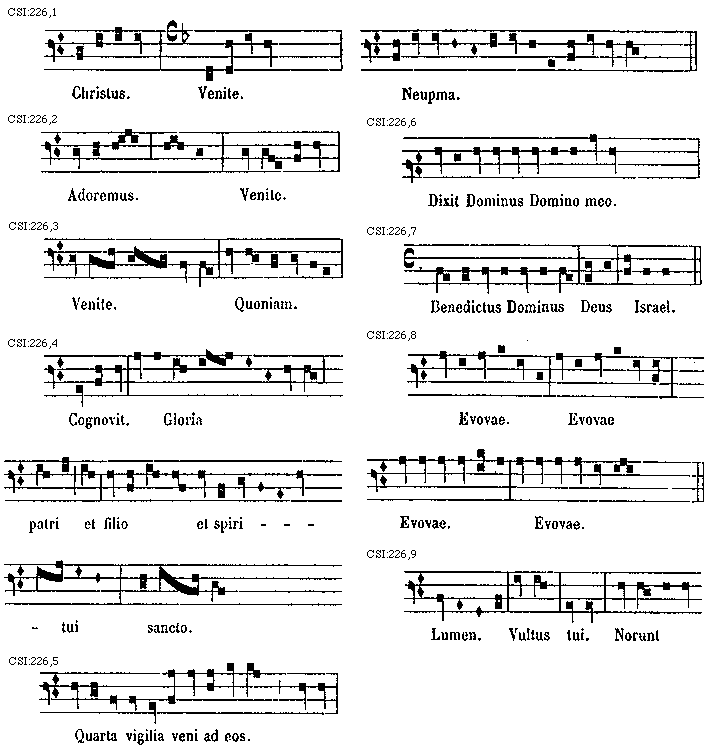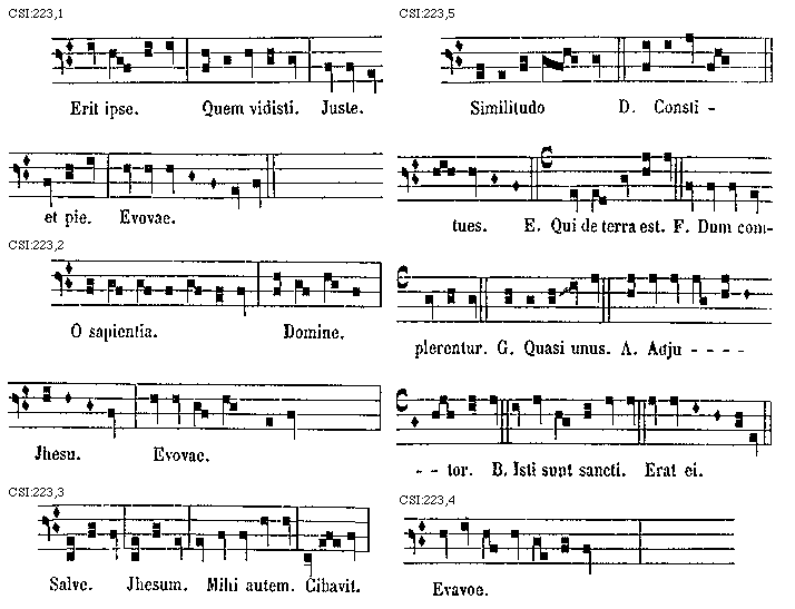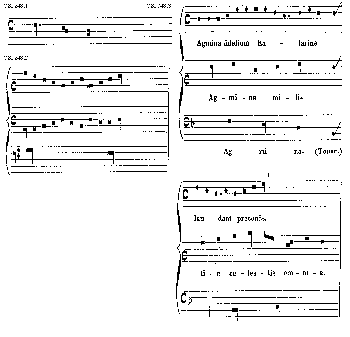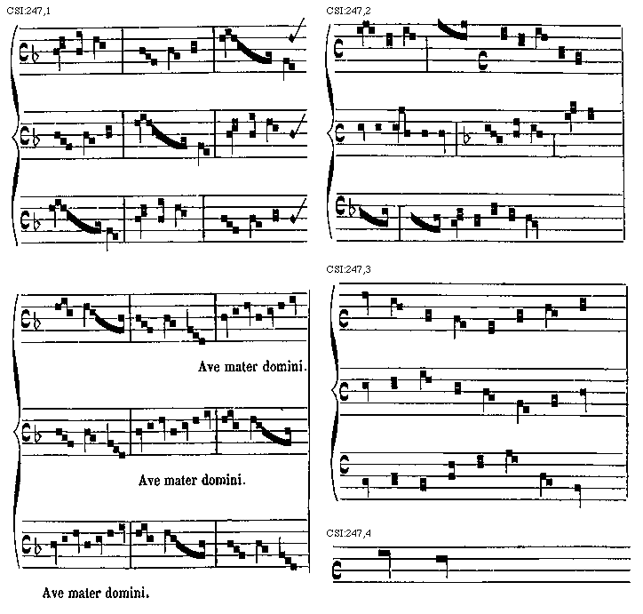 [247]vel tertius ita ut non simul descendat vel ascendat, nisi forte tamen majoris pulchritudinis, et a singulis singulorum cantus recitentur, sic: