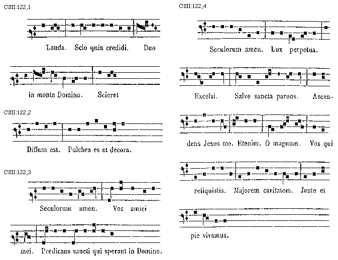 [122][CSII:122,1; text: Lauda. Scio quia credidi. Due in monte Domino. Scieret]