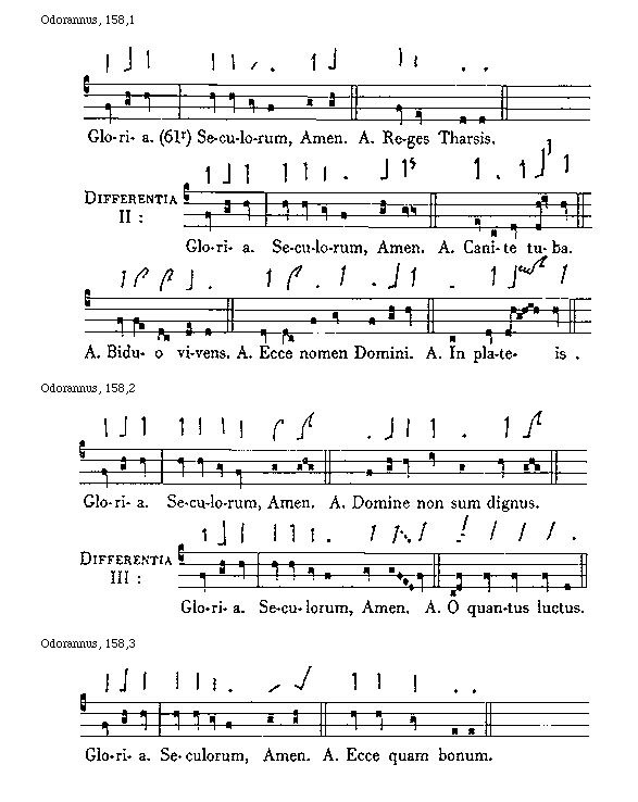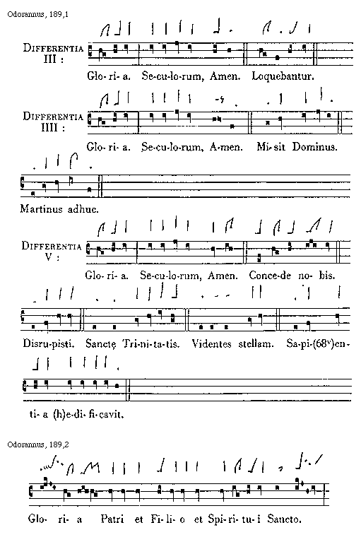[Odorannus, 193,3; text: Differentia I: Gloria Patri et Filio et Spiritui Sancto. Sicut erat in principio et nunc et semper et in secula]