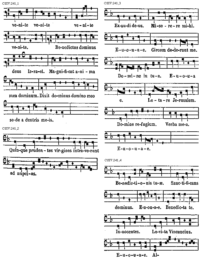 [CSIV:249,3; text: D Prothus C. D. E. F. G. a. b. [sqb] c. d. D Plaga prothi. [Gamma]. A. B. C. D. E. F. G. a. b. E Dentrus. D. E. F. G. a. [sqb] c. d. e. E Plaga dentri. B. C. D. E. F. G. a. b. [sqb] c. F Tritus. D. E. F. G. a. b. [sqb] c. d. e. f. F Plaga triti. C. D. E. F. G. a. b. c. d. G Tetrardus. F. G. a. [sqb]. c. d. e. f. g. G Plaga telrardi. C. D. E. F. G. a. [sqb] c. d. e.]