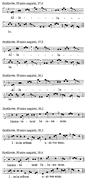 [Szydlovite, Musica magistri, 64,4; text: c, Evovae.]