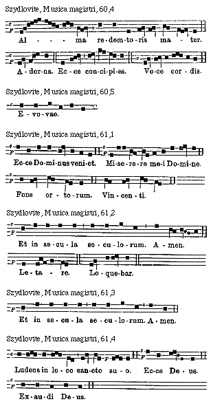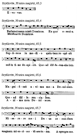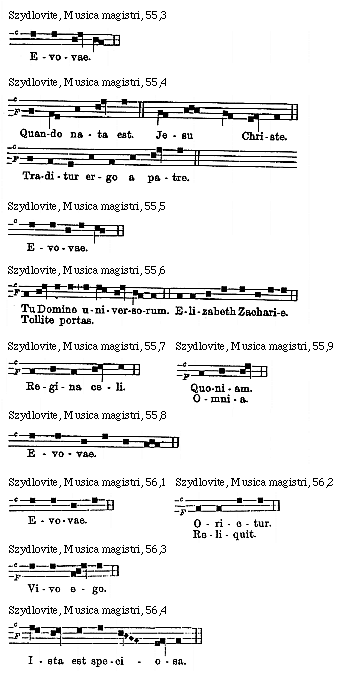 [Szydlovite, Musica magistri, 64,6; text: c, Evovae.]