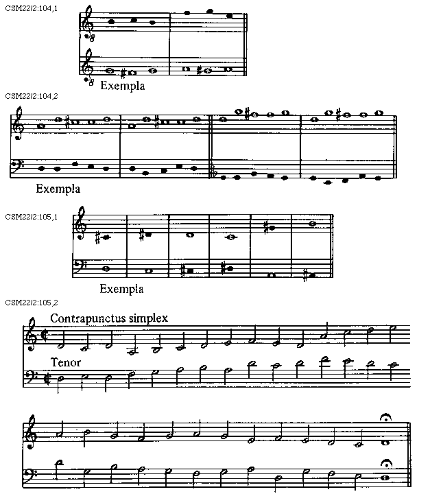 Porro licet omnium praemissorum modorum ad efficiendum contrapunctum tam super cantum planum quam super figuratum exempla sint contrapuncti diminuti, simpliciter tamen, hoc est nota contra notam eisudem