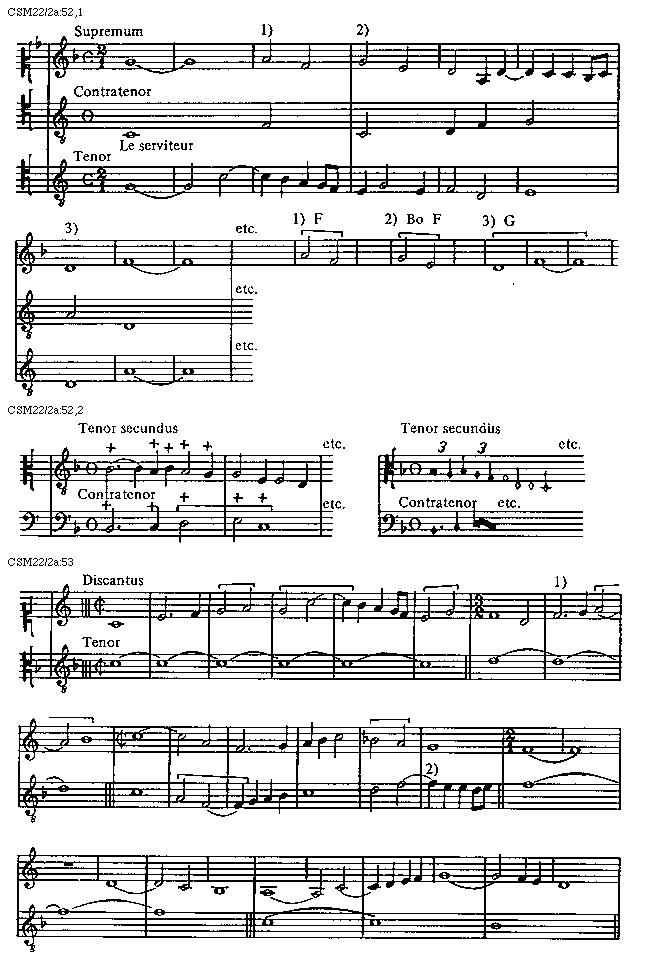 [52][CSM22/2a:52,1; text: Supremum, Contratenor, Tenor, Le serviteur, etc.]