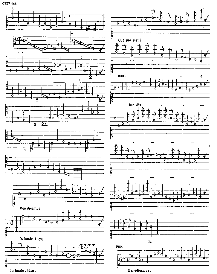 [466][CSIV:466; text: Deo dicamus, In laude Jhesu, Que sue mat i marie benedixit. Duo. Benedicamus.]