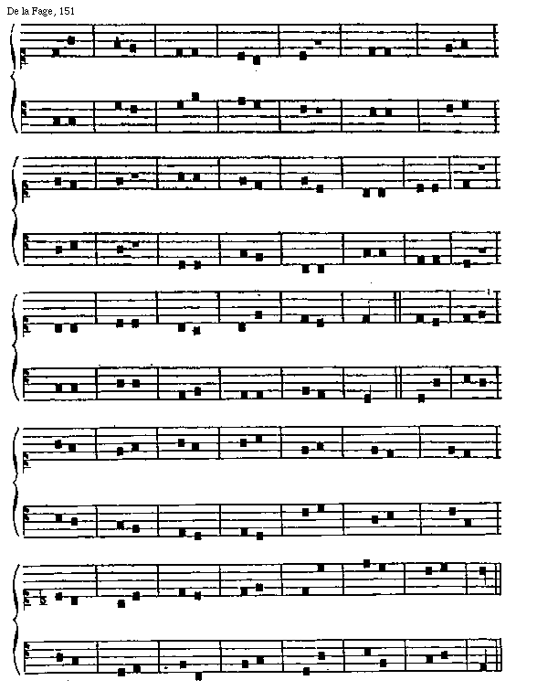 Expertis theoricae peritis haec indubiae nota sunt quod si vel in tertia, sexta vel decima sit vocum positio, non fit quies, sed quaelibet ut suae copuletur perfectioni, ad eam coacta movetur; et hinc est quod cantus quilibet, mensura ordinatus in perfectam consonantiam, quamvis ante finem ultimum quidam in imperfectis consonantiis seu dissonantiis interdum habent terminari, in quibus cum audientis bene disposita sit auris non quiescit, ultimus consonans finis addicitur.