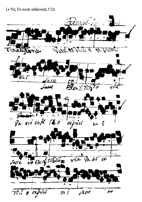 [Le Vol, De modo addiscendi, f.17r; text: la, sol, ut, mi, vel fa]