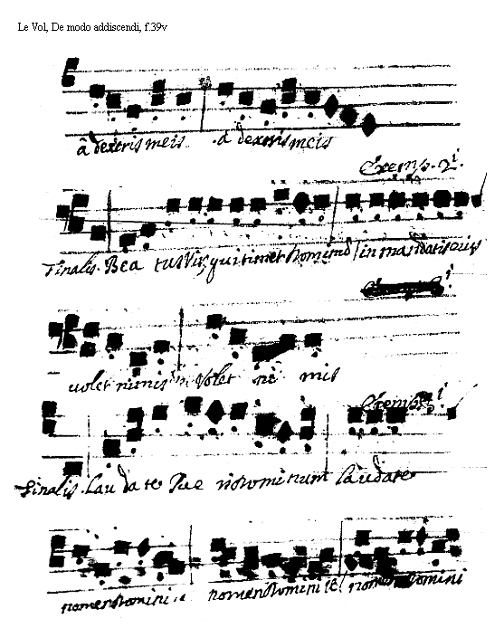 [Le Vol, De modo addiscendi, f.39r; text: Exemplum Primi Toni. Finalis. Dixit Dominus Domino meo Sede a dextris meis]