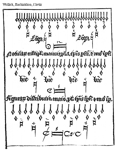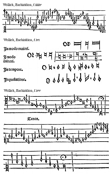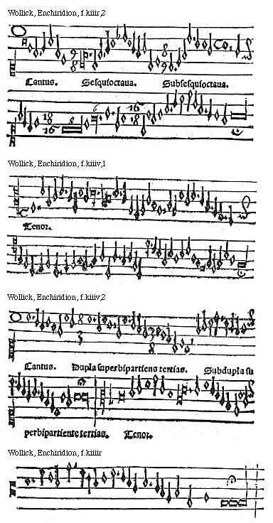 Source:Enchiridion musices Nicolai Wollici Barroducensis de gregoriana et figuratiua atque contrapuncto simplici percommode tractans, omnibus cantu oblectantibus perutile et necessarium (Impressum Parisii impensa honestissimorum virorum Iohannis Parui ad intersignium Leonis Argentei et Francisci Regnault ad intersignium diui Claudii commorantium. Anno virginei partus .1512. 14. kalendas Nouembris), ff. gviiv–kiiiir.