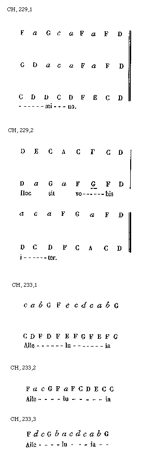 [CH, 233,3; text: F, d, c, G, b, a, Alleluia]