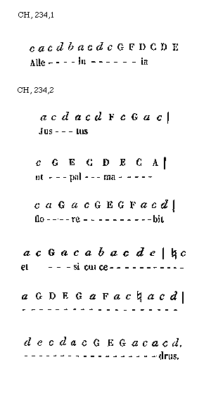 [CH, 234,1; text: c, a, d, b, G, F, D, C, E, Alleluia]