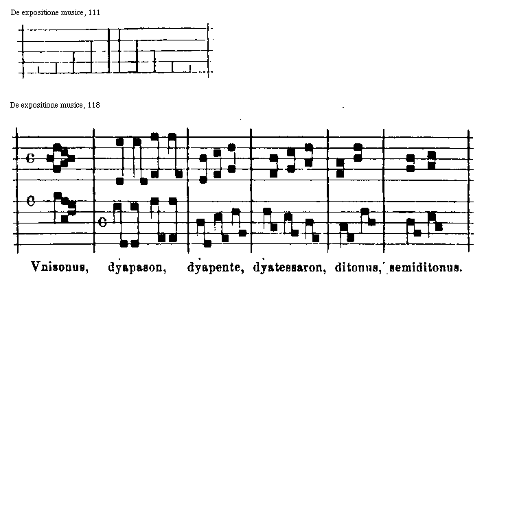 [128]genera sonorum modulos purpurat et insignit; nam per eam queque uocum sonoritas instrumentis siue naturalibus siue artificialibus concordata est reducibilis ad numerum recte uocis. Ideoque istam speciem siue illud capitulum ad consumationem huius opusculi decreuimus reseruandum.