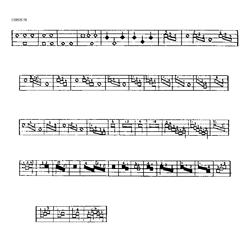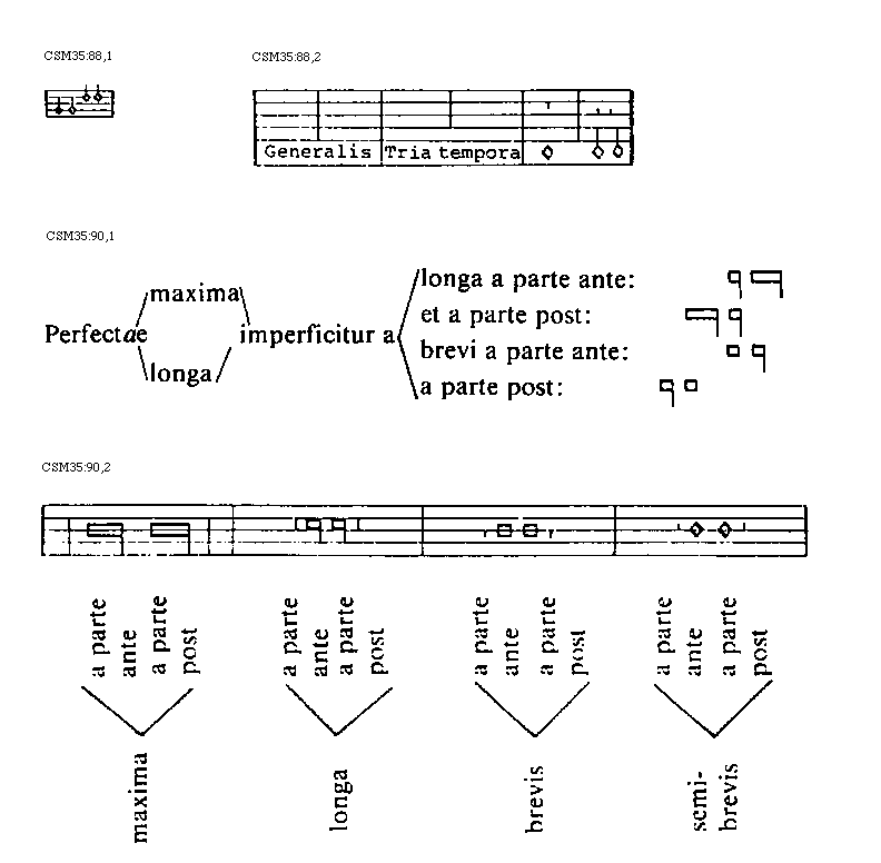 [CSM35:90,2; text: maxima, longa, brevis, semibrevis, a parte ante, a parte post]