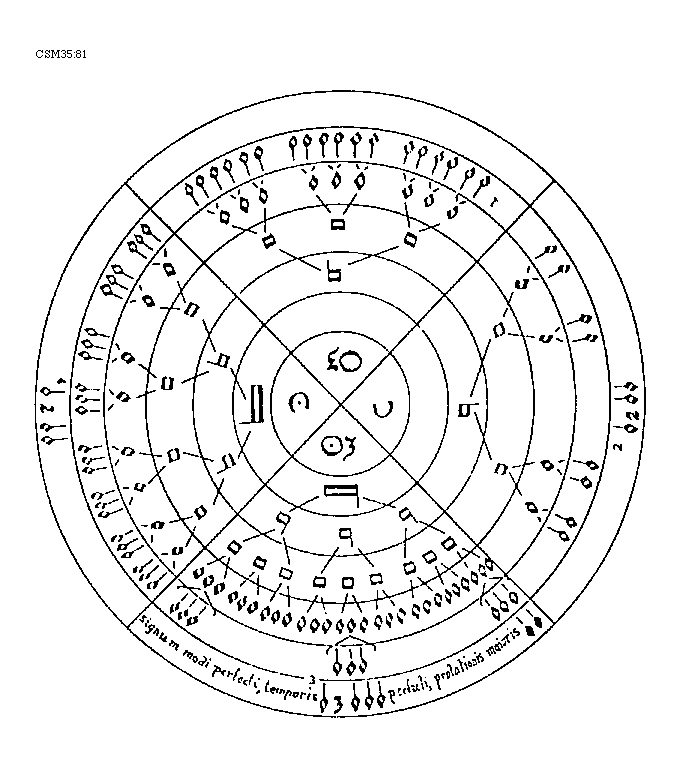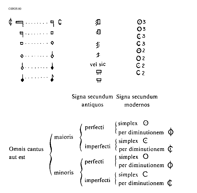 [CSM35:81; text: signum modi perfecti, temporis perfecti, prolationis maioris, 1, 2, 3, 4]