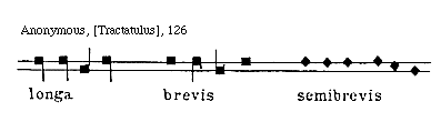 Quando autem longa nota est ante unam solam brevem vel plures semibreves, tunc longa valet duo tempora, ut hic patet: [L,B,L,S,S,S,L; L,S,S,S,L]