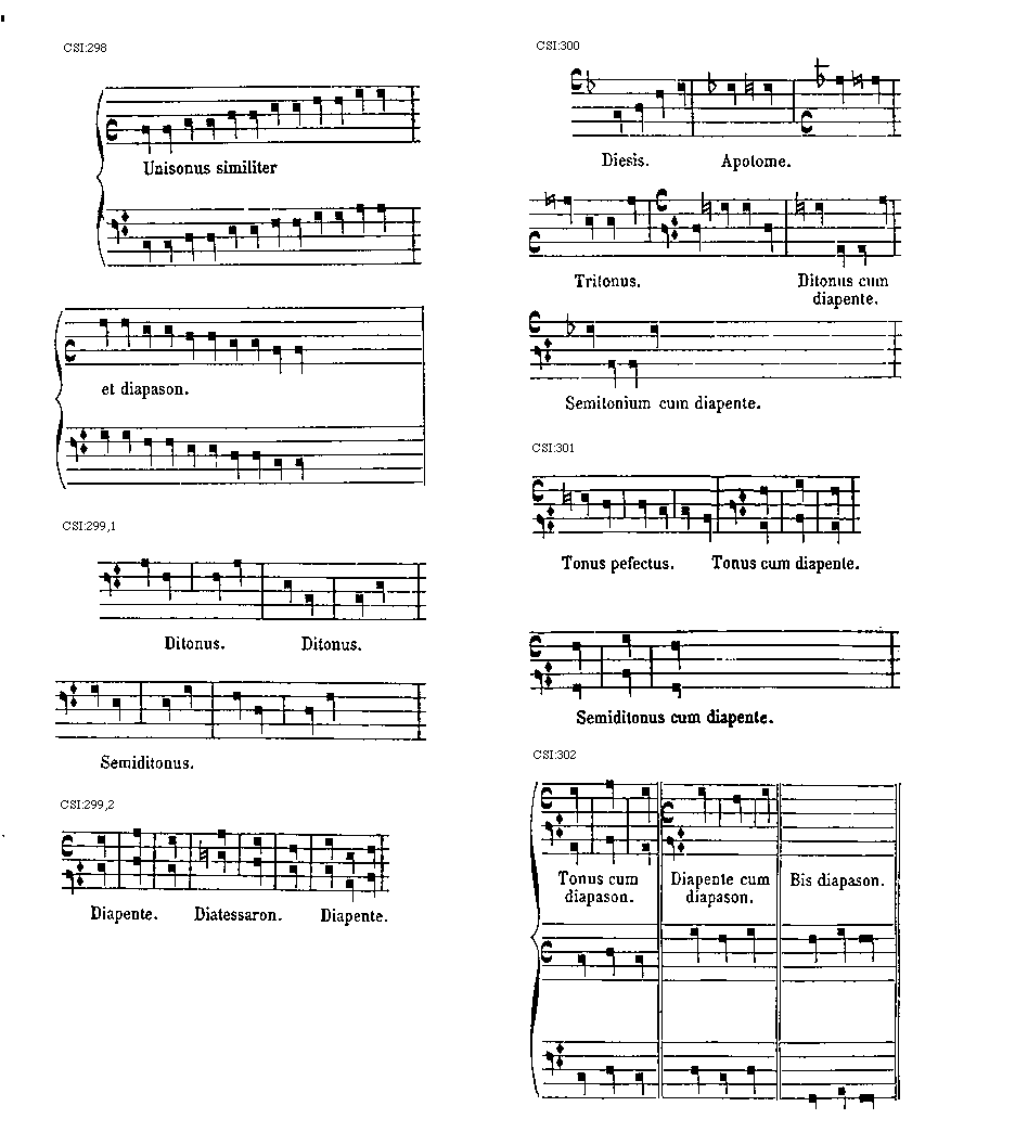 [CSI:300; text: Diesis. Apotome. Tritonus. Ditonus cum diapente. Semitonium cum diapente.]