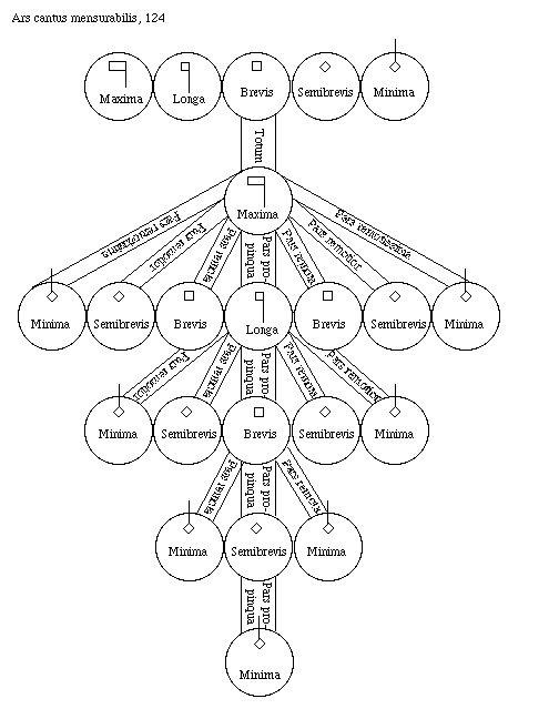 Source:Ars cantus mensurabilis mensurata per modos iuris, ed. and trans. C. Matthew Balensuela, Greek and Latin Music Theory, vol. 10 (Lincoln: University of Nebraska Press, 1994), 124–258 (even–numbered pages only).