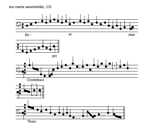 [Ars cantus mensurabilis, 232; text: Rose sans per, Tenor, Contratenor]