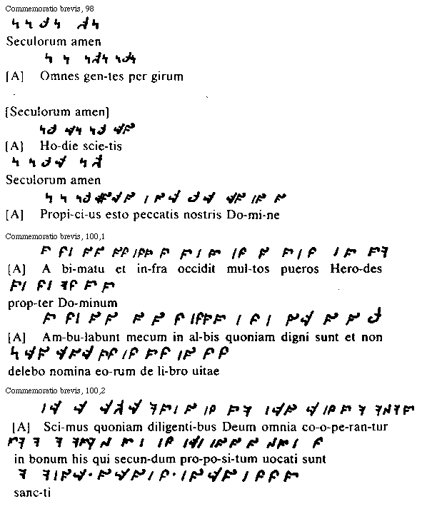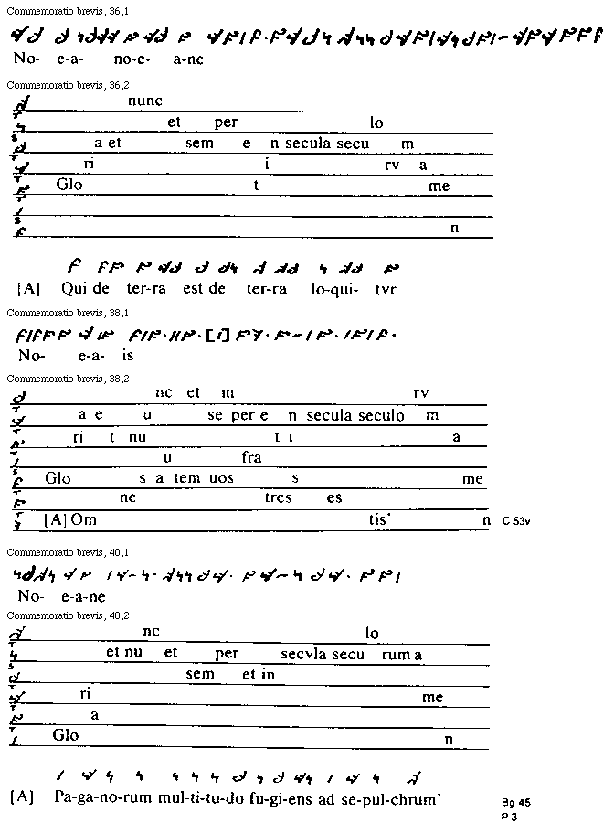 [Commemoratio brevis, 40,2; text: tonus, semitonium, Gloria et nunc et semper et in secvla seculorum amen, [Antiphona] Paganorum multitudo fugiens ad sepulchrum [Bg 45, P 3]]